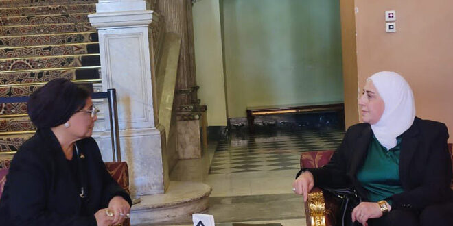 בשולי עבודת המושב הרגיל השישי של המועצה הערבית לאוכלוסיה ופיתוח שהתקיים בקהיר, דנה היום שרת הרווחה והעבודה המהנדסת סמר אל-סיבאעי עם נשיאת מועצת האוכלוסין הלאומית במצרים עבלה אל-אלפי בחיזוק פיתוח האוכלוסייה ושיפור תנאי האוכלוסייה באזור.