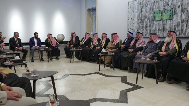 דמשק – סאנא המפקד אחמד אל-שרע נועד עם חברי משלחת ראשי השבטים הערבים בסוריה.