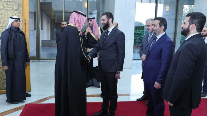 מפקד ההנהלה החדשה בסוריה אחמד אל-שרע , שר החוץ אסעד אלשיבאני וראש המודיעין אנס ח’טאב נועדו עם שר החוץ הכוויתי עבדאללה עלי אל-יחיא ומזכ”ל מועצת שיתוף הפעולה במפרץ הערבי ג’אסם מוחמד אלבדיוי.