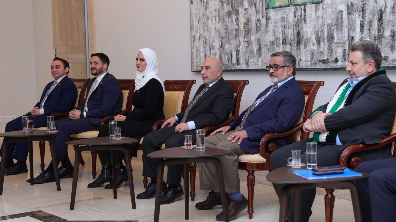 11/01/2025 דמשק – סאנא מנהיג הממשל הסורי החדש, אחמד אל-שרע, ושר החוץ, אסעד אל-שייבאני, נפגשו עם משלחת מהקהילה הסורית באמריקה. המנהיג אל-שרע נפגש עם משלחת מהקהילה הסורית באמריקה 2025-01-11 sammar