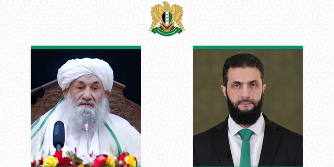 הנשיא א-שרע מקבל מברק ברכה מראש ממשלת נסיכות אפגאנסטן 2025-02-18