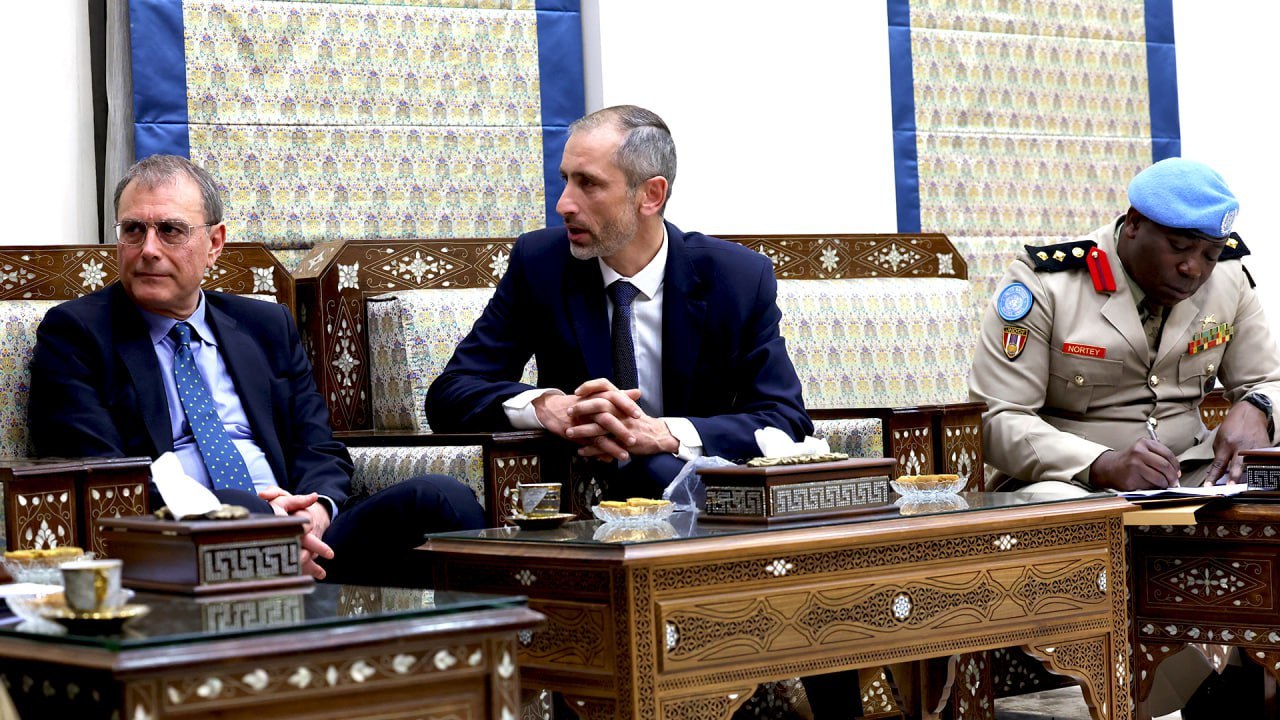 20/02/2025 דמשק – סאנא שר הביטחון הגנראל המהנדס מורהף אבו קסרה, קיבל היום את פניה של משלחת (UNDOF) השייכת לארגון או”ם. שר הביטחון מקבל פני משלחת (UNDOF) מטעם האו"ם 2025-02-20 mouhmad