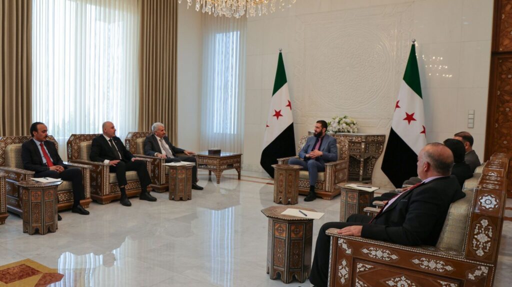 11/03/2025 דמשק – סאנא הנשיא מר אחמד א-שרע נועד עם חברי הוועדה שהורכבה לחקירת הארועים האחרונים והעובדות בחוף הסורי. פגישת הנשיא מר א-שרע עם חברי וועדת חקר העובדות בארועי החוף הסורי לאחרונה 2025-03-11 sammar