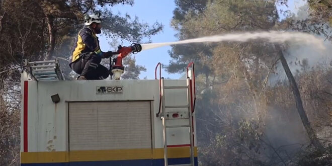 צוותי כיבוי של ההגנה האזרחית הסורית ולוחמי האש של משרד החקלאות כיבו שריפת יער גדולה שפרצה אמש באזור אל-רביעה, סמוך למשקיתא בריף לטקיה.