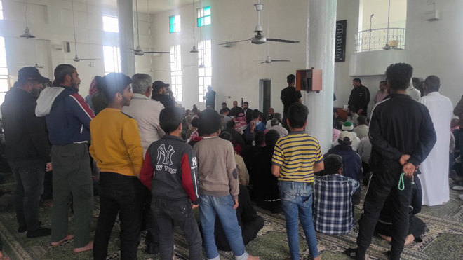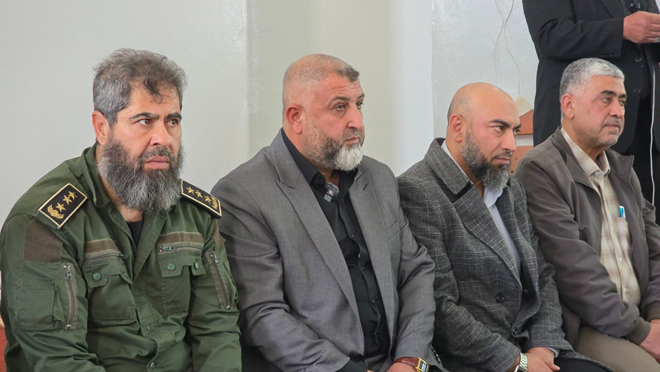 27/03/2025 דרעא-סאנא משלחת מהעיר דרעא כולל המושל, מפקד המשטרה ופקיד הביטחון הגיעה לכפר אל-כויא כדי לנחם את חללי הכפר שנהרגו מהפגזות הכיבוש הישראלי. משלחת מדרעא מנחמת את חללי הכפר אל-כויא 2025-03-27 mouhmad