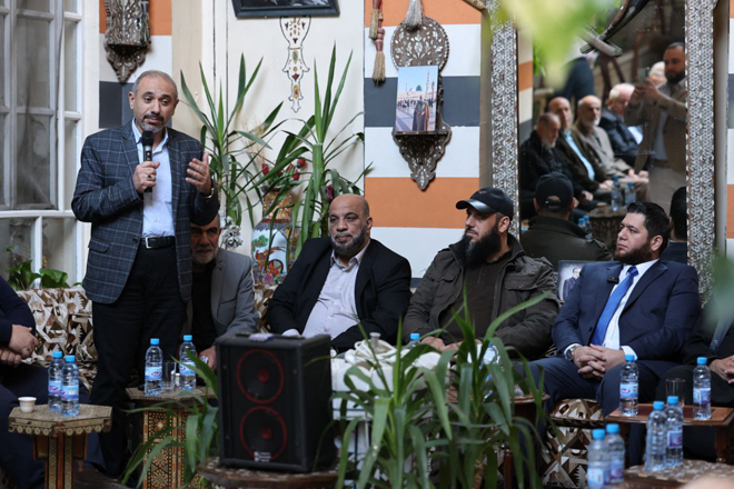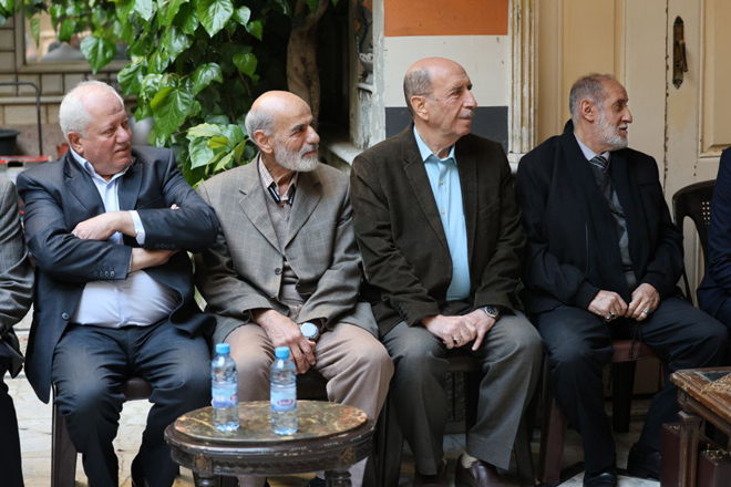 15/04/2025 דמשק – סאנא מנהל המזכירות הכללית לעניינים מדיניים נפגש היום עם מכובדים משכונת אל-אמין בדמשק במפגש ידידותי שערך ביתו של המשורר הסורי ניזאר קבאני הענות להזמנתם. מנהל המזכירות הכללית לעניינים מדיניים מקיים פגישה קבועה עם נציגי העידה הנוצרית 2025-04-15 nedal1