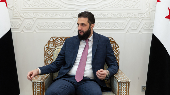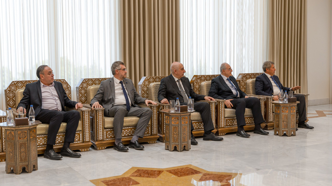 23/04/2025 דמשק – סאנא הנשיא אחמד א-שרע נועד עם מספר אנשי עסקים סורים המתגוררים ברפובליקה הערבית המצרית בארמון העם בדמשק. נשיא הרפובליקה נועד עם מספר אנשי עסקים סורים המתגוררים במצרים 2025-04-23 nedal1
