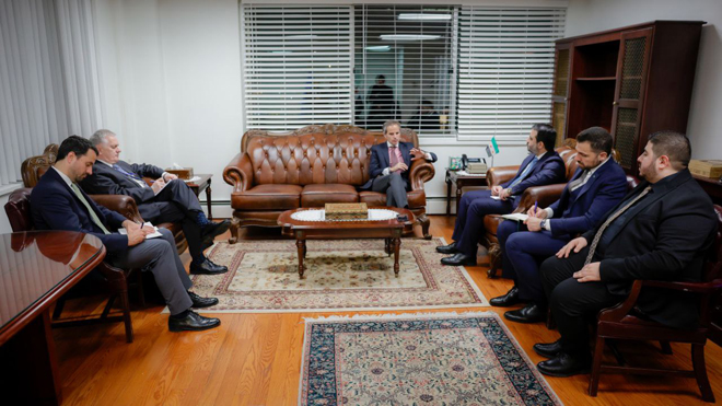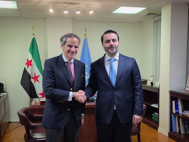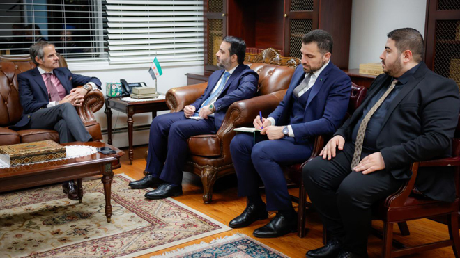 28/04/2025 ניו יורק – סאנא שר החוץ והמהגרים אסעד אל-שייבאני נפגש היום בניו יורק עם מנכ”ל הסוכנות הבינלאומית לאנרגיה אטומית (סבא”א) מר רפאל גרוסי. השר אל-שייבאני נפגש עם מנכ"ל הסוכנות הבינ"ל לאנרגיה אטומית 2025-04-28 nedal1