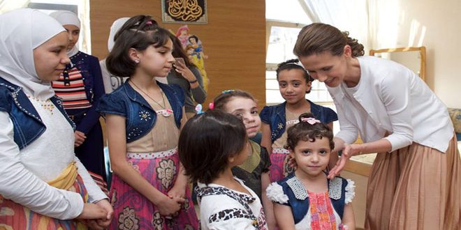 הגברת אסמאא אל-אסד הדגישה את התפקיד החשוב של בתי היתומים שמטפחים את הקבוצות האלה,