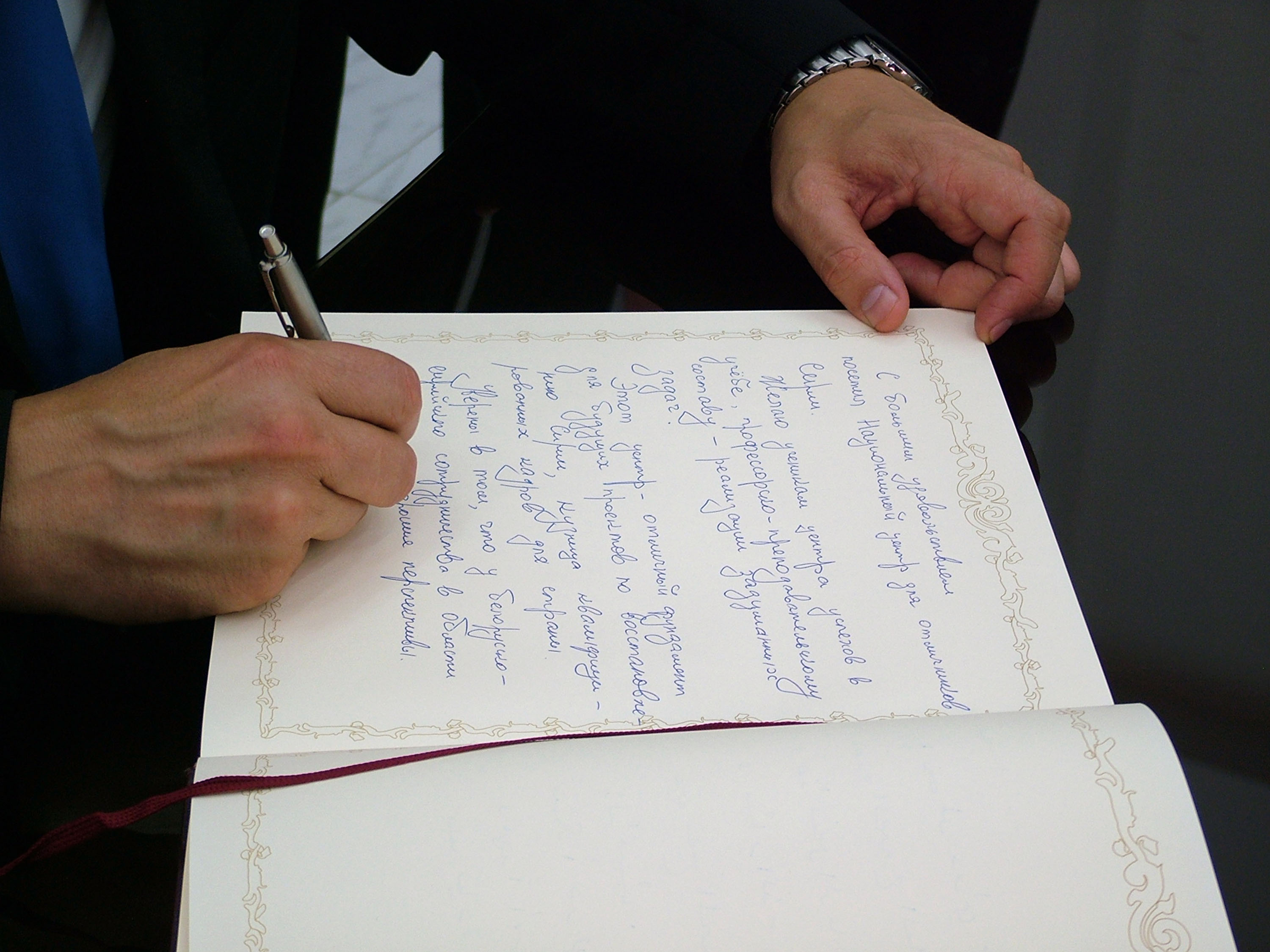 השגריר הדגיש כי ארצו מוכנה לחזק את שיתוף הפעולה המדעי בין המרכז הלאומי למצטיינים באוניברסטאת תשרין לאוניברסטאות בבילרוס בכדי לשפר את לימודי השפה הרוסית באוניברסטאת תשרין.