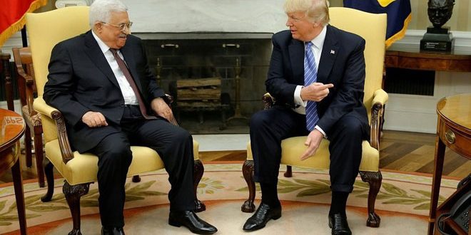 טראמפ אמר במהלך פגישתו היום עם הנשיא הפלסטיני, מחמוד עבאס, בבית הלבן : ” אנחנו רוצים לכונן שלום בין הפלסטינים לישראל, ונשיג את זה, אך הוא לא התיחס לדרך השגת דבר זה ” .