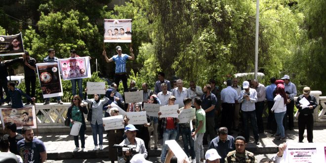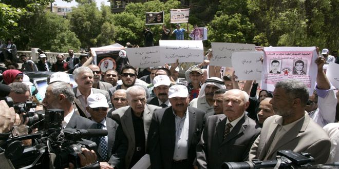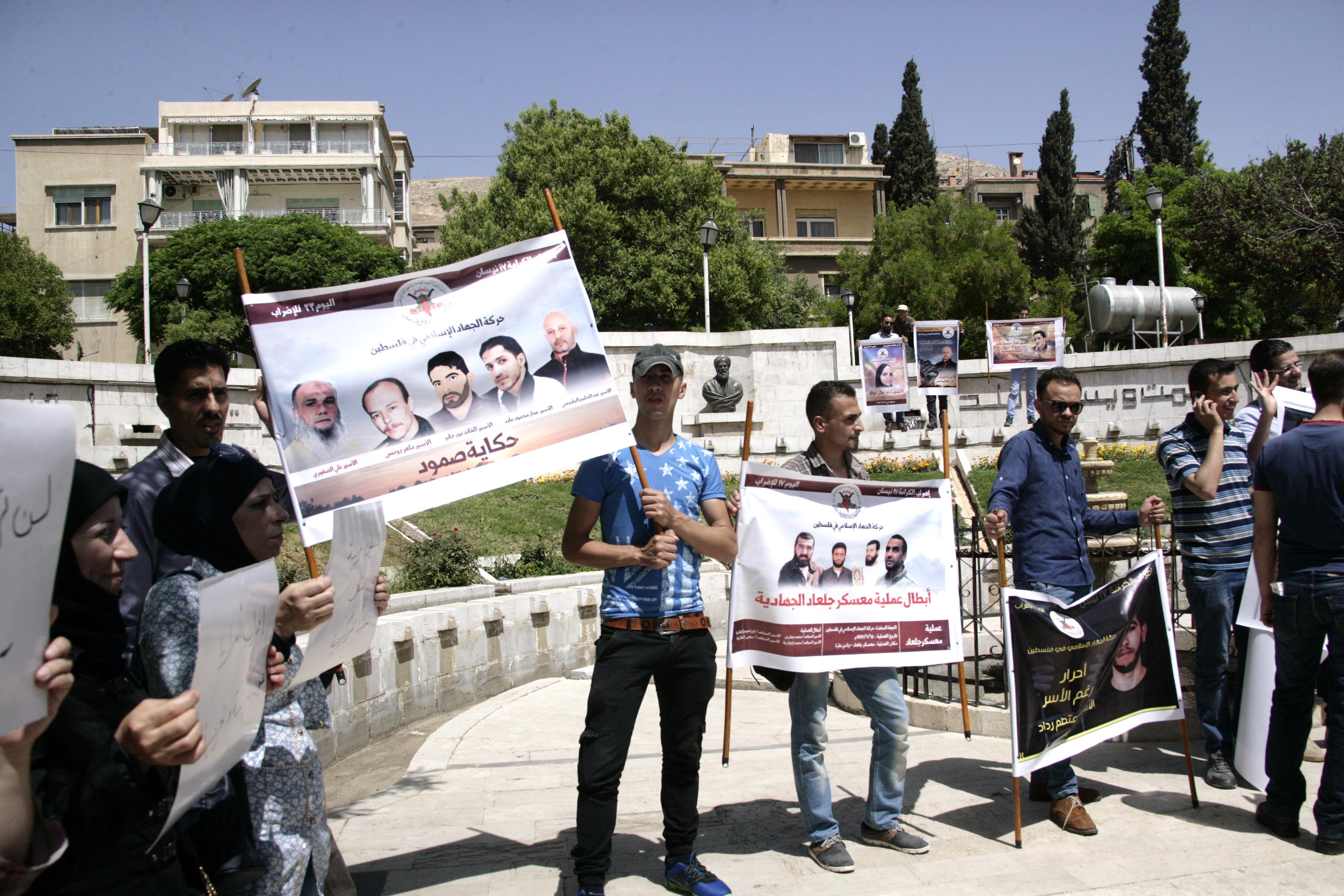 הוועדה העממדית הערבית-הסורית לתמיכה בעם הפלסטיני ובהתנגדותו לפרויקט הציוני, בהשתתפות עם משלחת המועצה הלאומית לתמיכה בהתקוממות הערבית ובסירוב הנורמלזיציה עם הצוינים בתונס, וגם עם האוניברסיטה של האומה הערבית ארגנה הסתגרות הזדהות עם האסירים שובתי הרעב שבבתי הכלא הישראליים, מול בנין הלשכה של משלחת הוועדה הבינ”ל של הצלב האדום בדמשק.