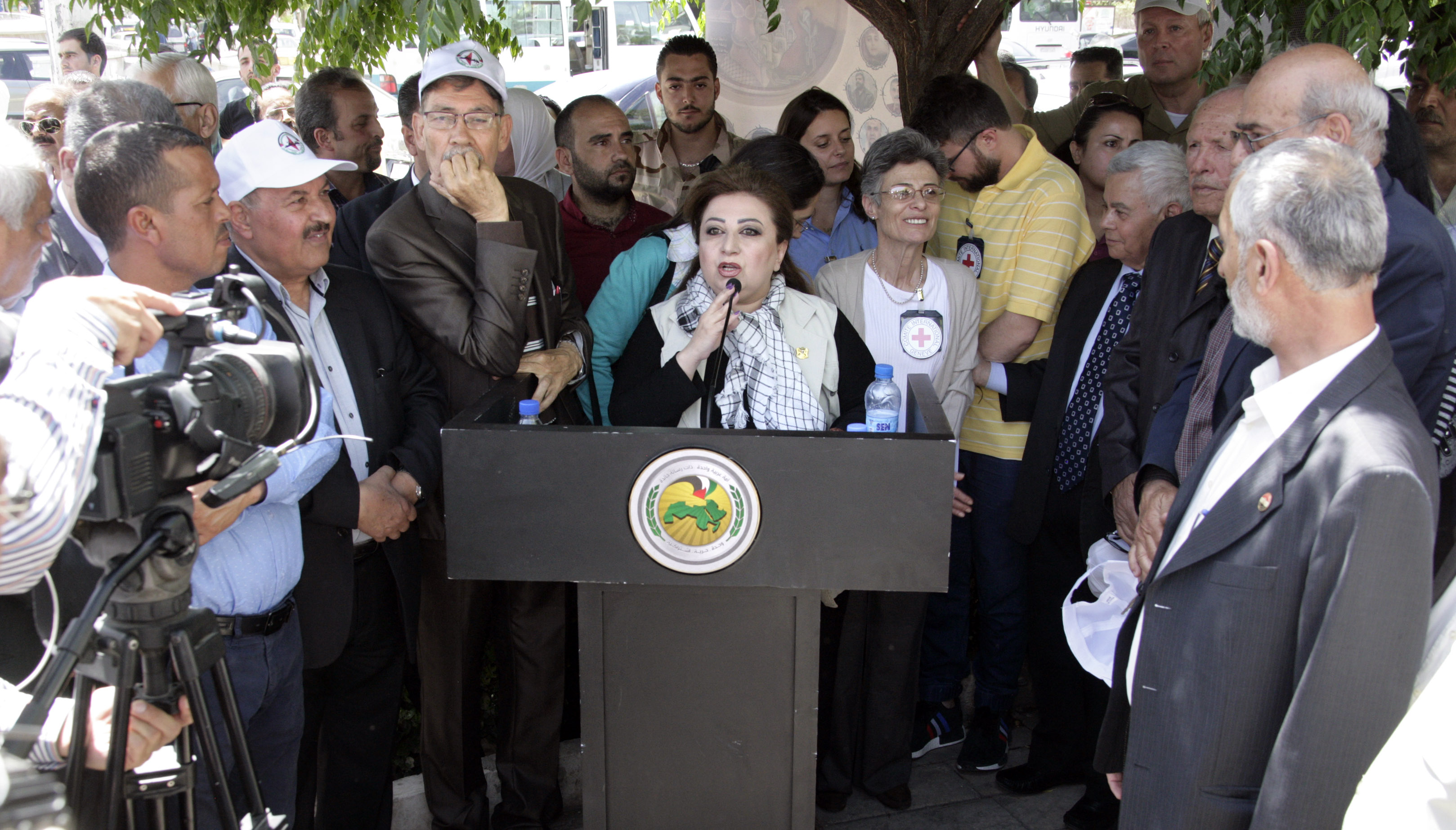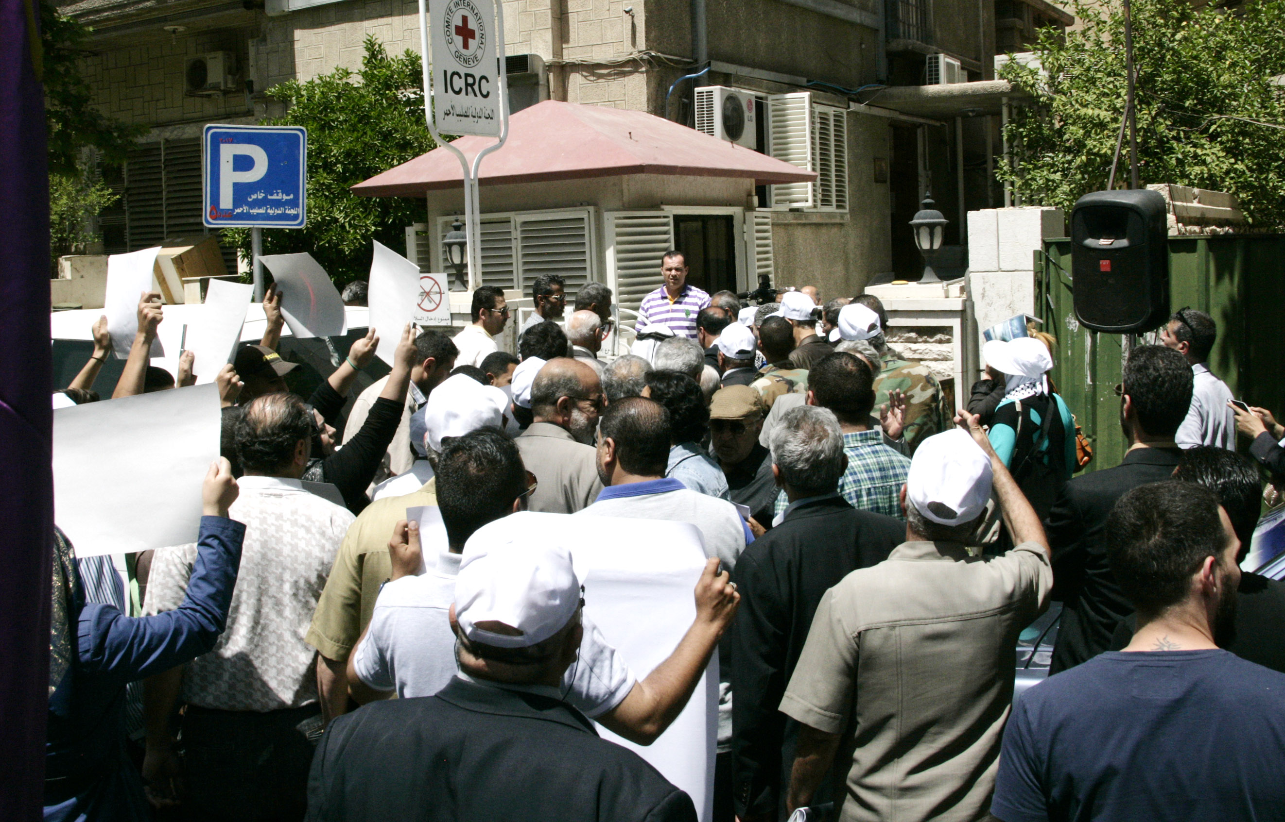 הסתגרות הזדהות עם האסירים שובתי הרעב מול לשכת הצלב האדום בדמשק