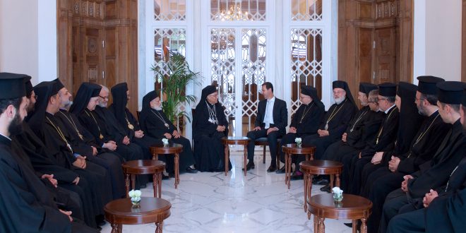 הנשיא בשאר אל-אסד קיבל היום את פני חברי משלחת הפטריארכיה של היוונים קאטולים בראשותו של הפטריארך יוסף אל-עבסי פטריארך אנטאקיה ושאר ארצות המזרח של העדה היוונית קאטולית.
