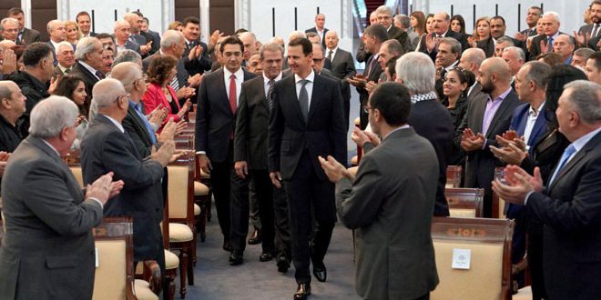 הנשיא אל-אסד למשתתפים במפגש הערבי לעמות עם הקואליציה האמריקנית-ציונית ריאקציונית 2017-11-14