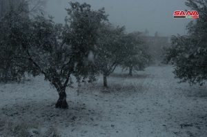 Previous Снегопад в поселке Канават на востоке провинции Сувейда