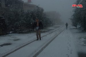 Previous Снегопад в поселке Канават на востоке провинции Сувейда