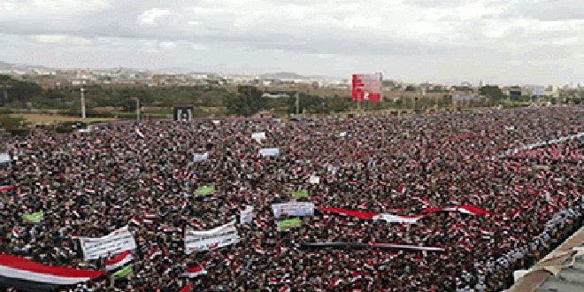 В столице Йемена Сане сотни тысяч человек вышли на демонстрацию протеста против непрекращающейся агрессии режима Аль Сауда.