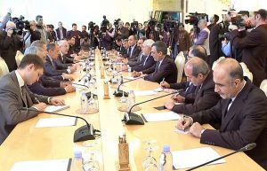 На встрече со своим иранским коллегой Мохаммадом Джавадом Зарифом в Москве Лавров подчеркнул, что после двусторонней встречи будет обсуждена ситуация в Сирии и последующие шаги при участии заместителя премьер-министра, министра иностранных дел и по делам эмигрантов САР Валида Аль-Муаллема.