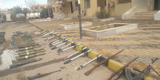 На востоке провинции Дейр-эз-Зор сотрудники спецорганов обнаружили в освобожденных от ДАИШ населенных пунктах Ас-Саяль, Хасрат и Аль-Джаля мины израильского производства, отравляющие вещества, оружие и боеприпасы.