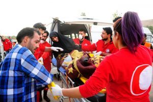 У выходов из гуманитарных коридоров людей ожидали представители Сирийского общества Красного Полумесяца, которые вместе с сирийскими военными организовали их встречу, раздачу воды и еды.