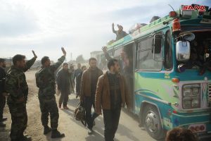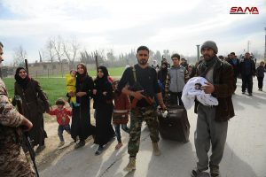 Вчера после многих лет пребывания в заложниках у различных террористических группировок тысячам мирных жителей городов и селений Восточной Гуты удалось покинуть этот район через организованные Сирийской армией гуманитарные коридоры в Хаммурии и лагере беженцев Аль-Вафидин.