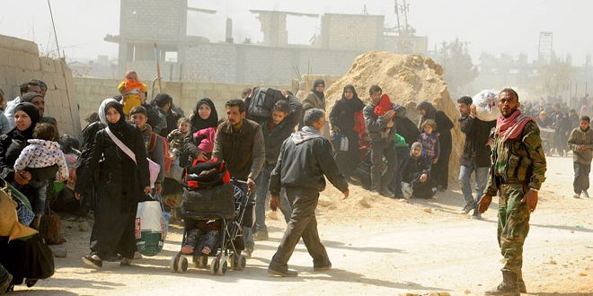 Тысячи жителей Восточной Гуты смогли выйти через гуманитарный коридор в населенном пункте Хаммурия, где военнослужащие Сирийской армии и сотрудники Сирийского общества Красного Полумесяца оказали им необходимую помощь.