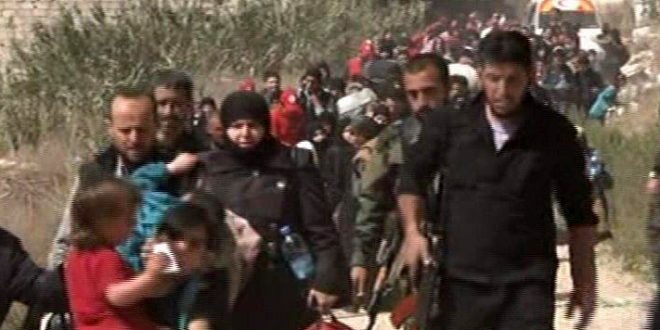 Корреспондент агентства САНА сообщил, что 4500 мирных граждан, ранее удерживаемых террористическими организациями в северном секторе Восточной Гуты, вышли через безопасный коридор у лагеря Аль-Вафидин.