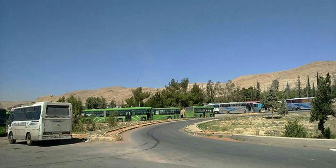 Корреспондент агентства САНА, находящийся рядом с гуманитарным коридором «Аль-Вафидин», сообщил, что несколько автобусов прибыли для вывоза боевиков «Джейш Аль-Ислам» и членов их семей из города Дума в Джараблус.