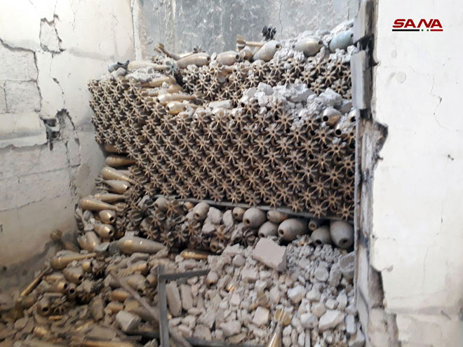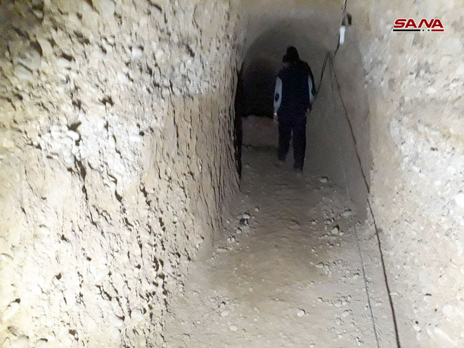 В городе Дума сотрудники МВД обнаружили сеть туннелей, а также крупную мастерскую террористической группировки «Джейш Аль-Ислам» по изготовлению мин и СВУ.