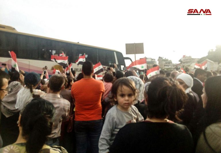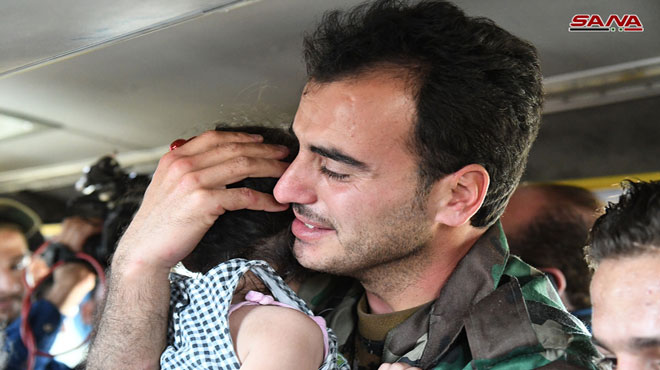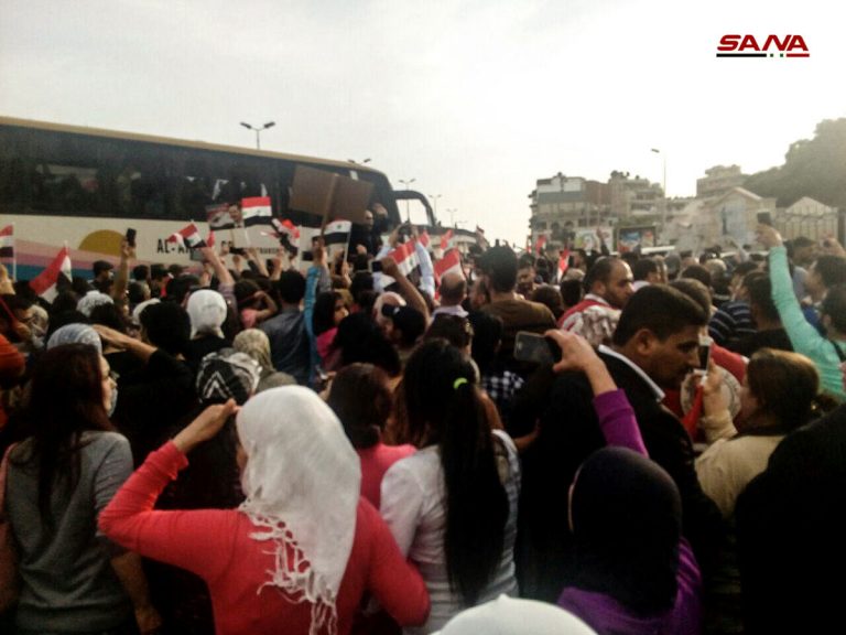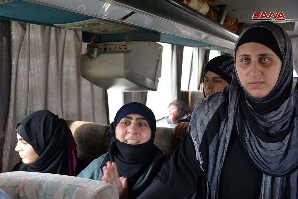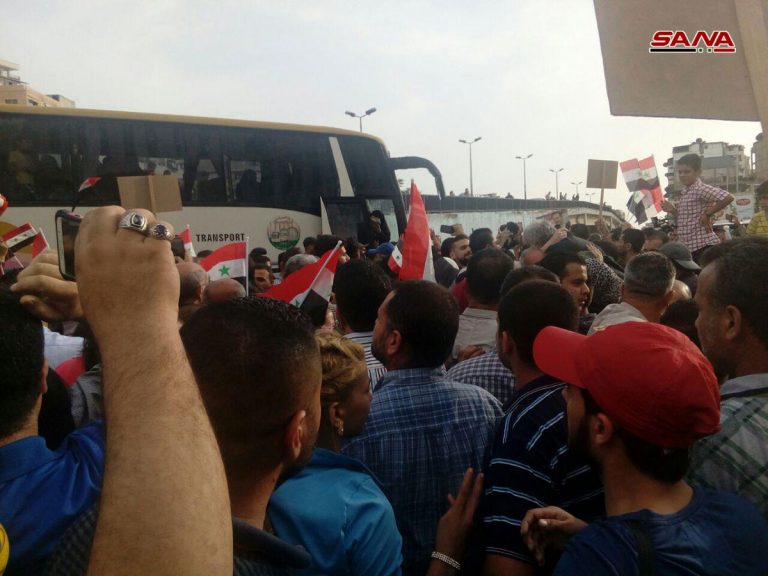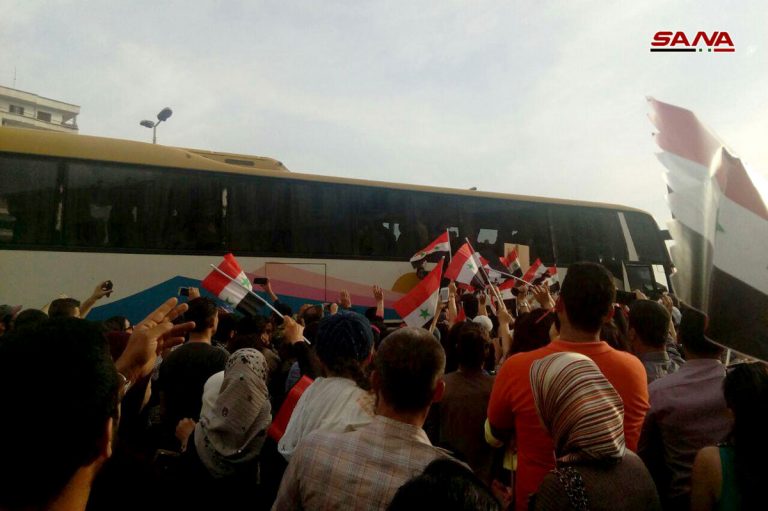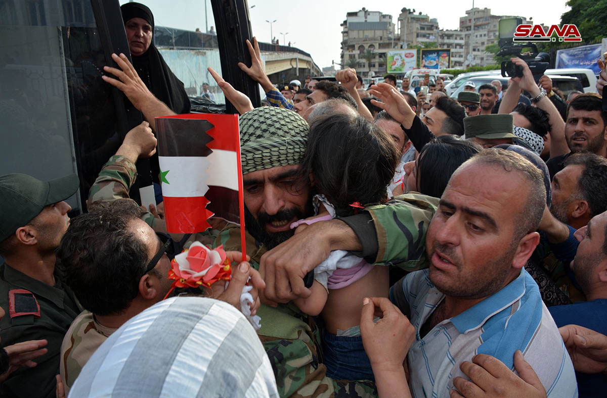 В 18.00 по местному времени в Латакию на 5-ти автобусах прибыли 42 человека из Штабрака, которых террористы удерживали в плену в окрестностях города Джиср Аш-Шугур провинции Идлеб.