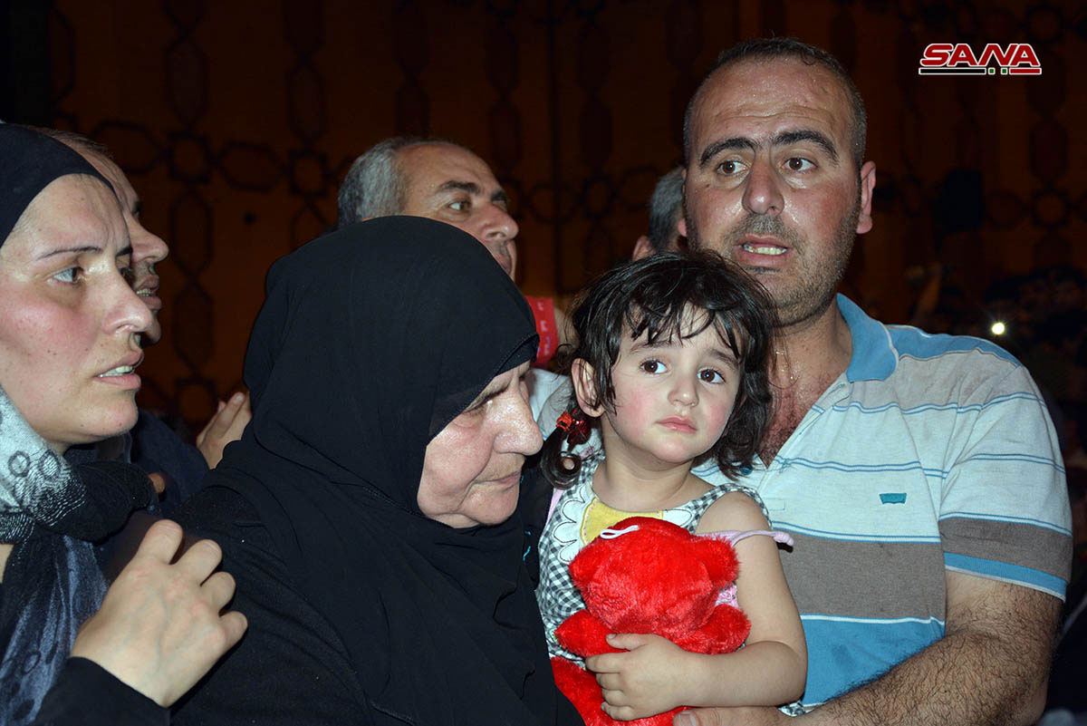 Родные и жители города с неприкрытым волнением встретили бывших пленников в культурном центре имени Аль-Асада. Большинство освобождённых – женщины и дети.
