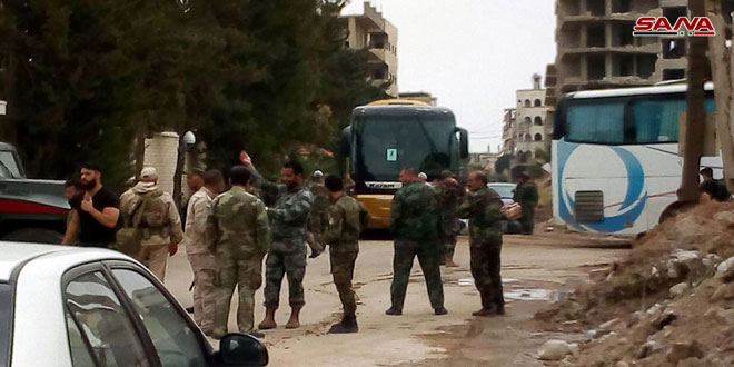 Военный корреспондент агентства САНА известил, что приняты все меры для вывоза на север Сирии 4-й группы террористов и их семей из поселков Баббила, Ельда и Бейт-Сахм.