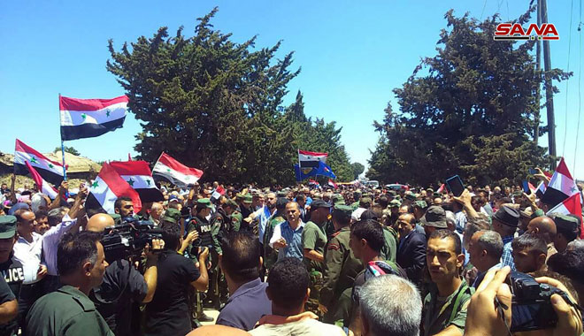 27/07/2018 Related Articles Министр обороны встретился с командованием 74-й и 40-й дивизий 06/06/2025 Жан-Батист Февр поздравил сирийский народ с праздником Ид Аль-Адха 06/06/2025 Президент Аш-Шараа прибыл в Дараа 06/06/2025 Кунейтра – САНА 27-07-2018 *Ю.К./М.К. Флаг САР над Кунейтрой 2018-07-27 Bassel