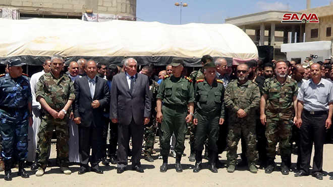 Губернатор провинции Дараа Мухаммад Халед Аль-Ханнус указал на важность координации и совместной работы государства и местной общественности для бесперебойной работы всех служб и институтов, а также противостояния тёмной такфиристской идеологии, которую террористы пытались насадить, чтобы заморочить молодое поколение сирийцев и отвлечь их от созидательной работы на благо развития страны.
