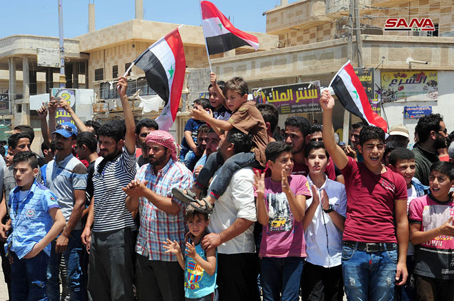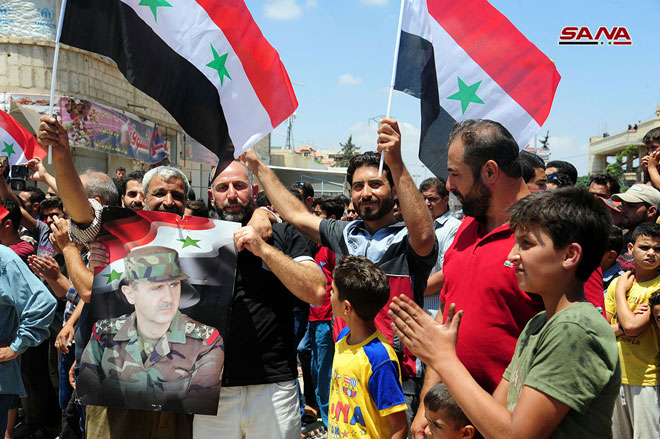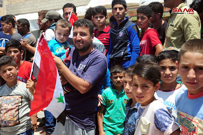 Местные жители искренне рады и удовлетворены тем, что в их район благополучно вернулись безопасность и стабильность после разгрома и выдворения бандформирований. Они уверены в полной победе САА над терроризмом, подчеркнув полную поддержку курса на возрождение Сирии.