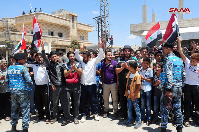 Массовый народный митинг состоялся после освобождения САА посёлка от терроризма, разминирования и прибытия сирийских полицейских. Он предваряет собой окончательное возвращение нормальной мирной жизни и работы всех государственных служб.