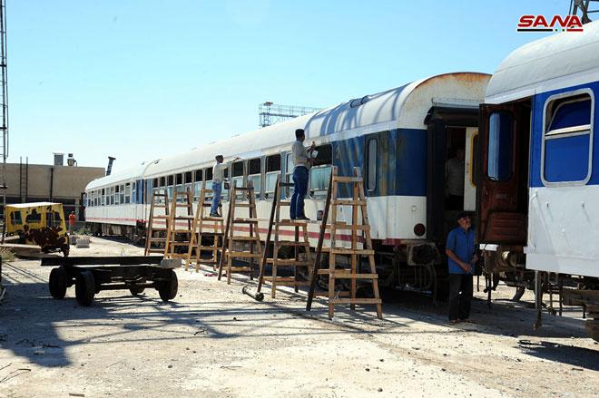По его словам, из Алеппо доставлены 6 локомотивов и полностью оборудованы 46 вагонов, которые будут перевозить гостей выставки, а в будущем станут основой для пассажирского сообщения Дамаска с другими провинциями.