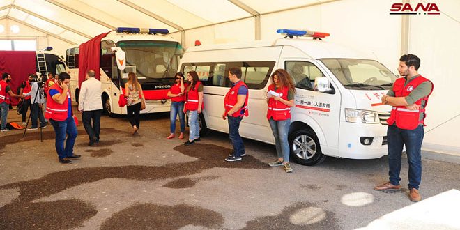 Сегодня Сирийское общество Красного Полумесяца получило мобильный госпиталь, оборудованный лабораторией и рентгеновским кабинетом, и две машины скорой помощи, предоставленные Китайским обществом Красного Креста.