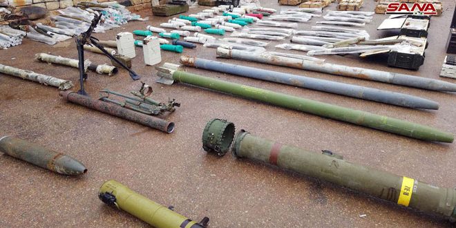 Корреспондент агентства САНА сообщил, что в провинции Дараа вблизи Дараа Аль-Баляд во время прочесывания территории компетентные органы обнаружили большое количество оружия и боеприпасов, оставленных террористами.