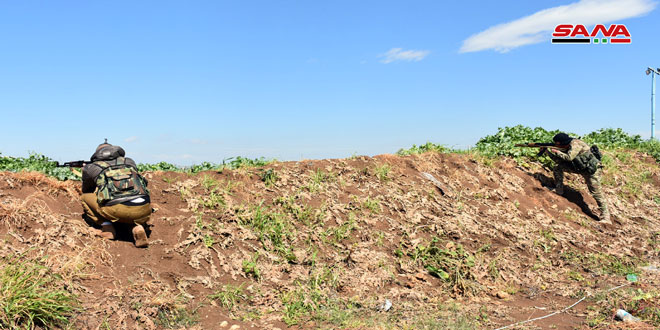 Корреспондент агентства САНА сообщил, что армейские подразделения разгромили военную технику террористической группировки «Джейш Аль-Изза» и уничтожили 10 её членов в населенных пунктах Аль-Латамна и Латмин на севере провинции Хама.