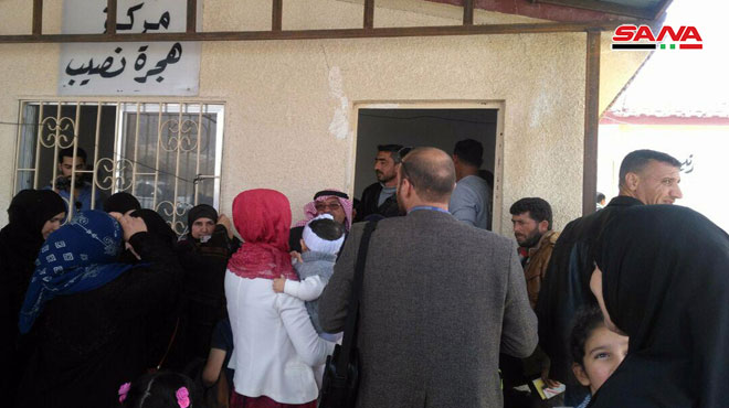 Корреспондент агентства САНА сообщил о возвращении из Иордании новой группы сирийцев через КПП «Насиб» в их населенные пункты, освобожденные от бандформирований.