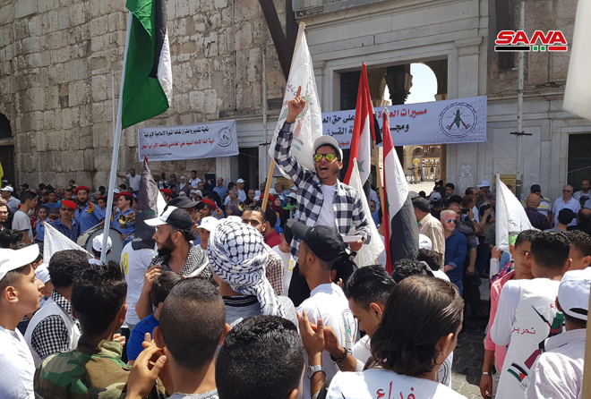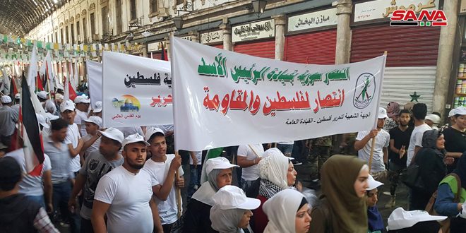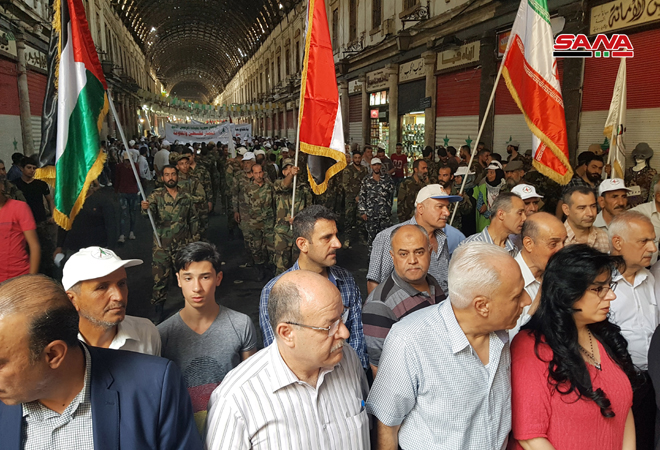 Сегодня в Дамаске по случаю Международного дня Иерусалима прошло массовое шествие от входа на рынок Аль-Хамидия до мечети Омейядов.