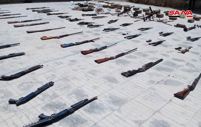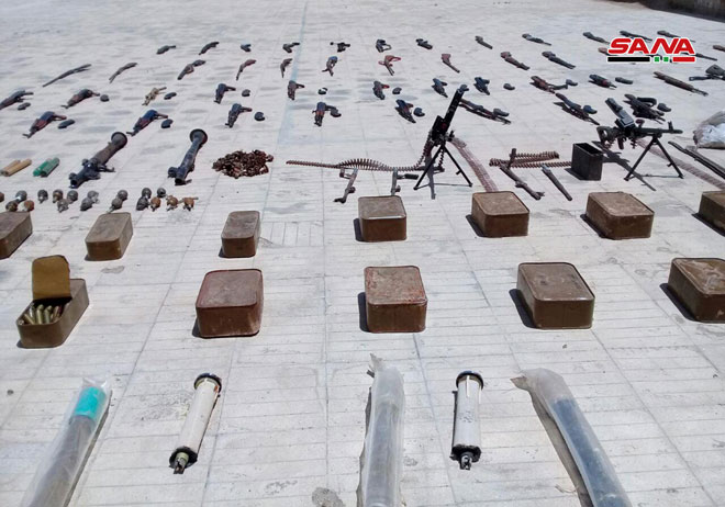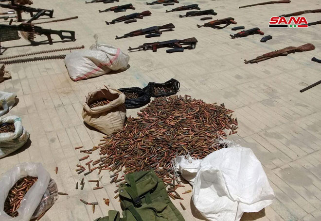 Корреспондент агентства САНА сообщил, что на севере провинции Хомс в районе Аль-Хуля компетентные органы обнаружили оставленные террористами оружие и боеприпасы.