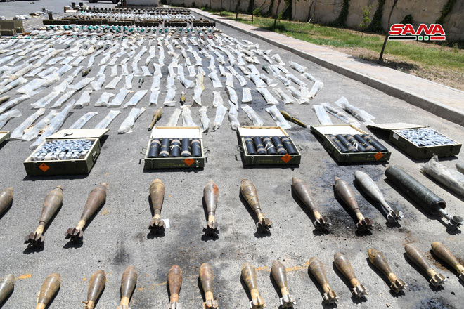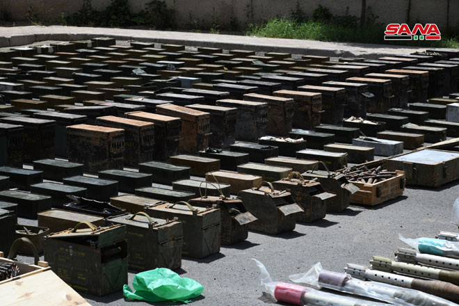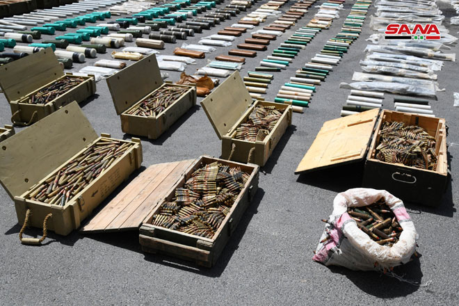21 мая в провинциях Дамаск и Дараа компетентные органы в ходе зачистки освобожденных от террористов селений и поселков также обнаружили оружие и боеприпасы, в том числе произведенные в США и Турции.