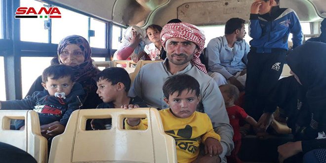 В рамках усилий правительства по возвращению сирийских перемещенных лиц новая группа семей вернулась из лагеря «Ар-Рукбан» в районе Ат-Танф, где американские оккупационные силы и их наемники удерживают тысячи мирных жителей.