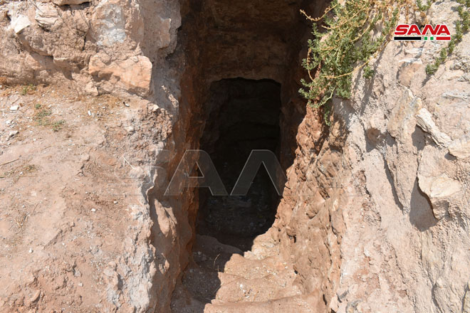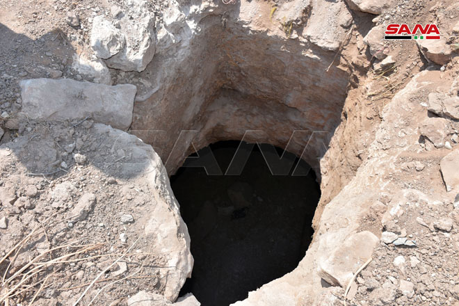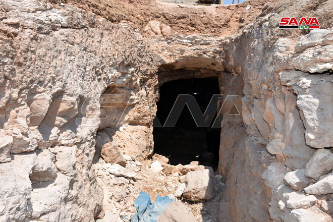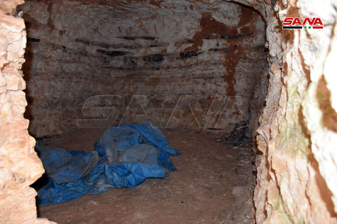 Камера запечатлела укрепления и укрытия террористов данного селения к востоку от поселка Аль-Хабит на юго-востоке провинции.