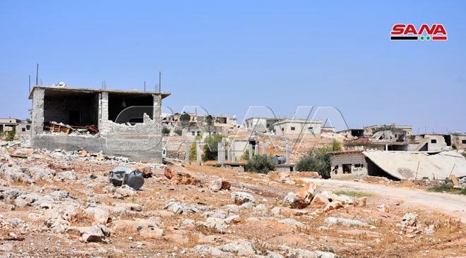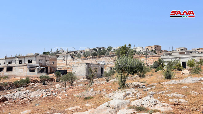 Съемочная группа агентства САНА в сопровождении бойцов Сирийской армии побывала в освобожденном от террористов селении Умм Аз-Зейтун на юго-востоке провинции Идлеб.