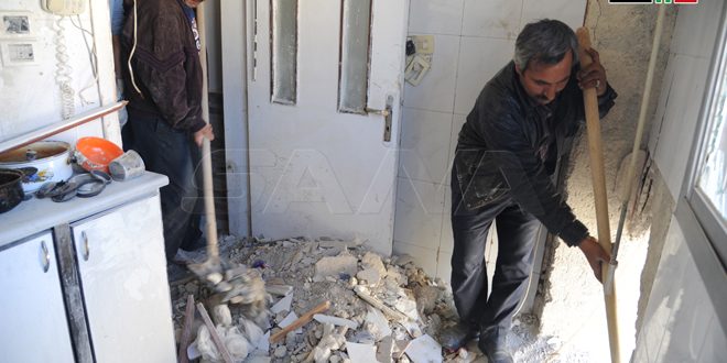 В результате жестокой израильской агрессии в провинции Дамаск причинен значительный ущерб жилым домам в столичных пригородах Дахия Кудсея и Бейт-Сабер. Бригады ремонтников приступили к восстановлению поврежденных зданий.