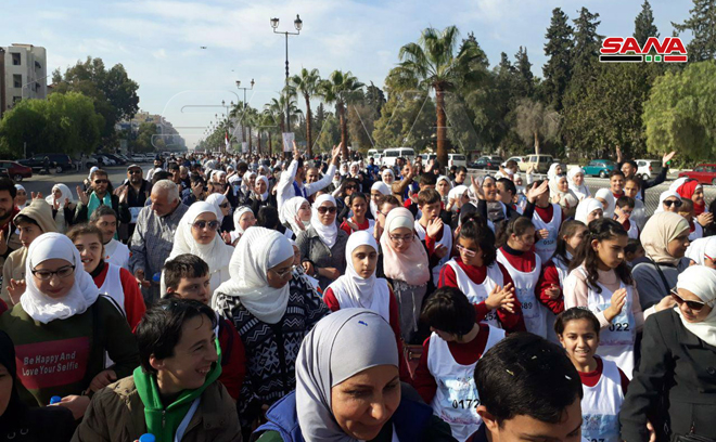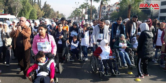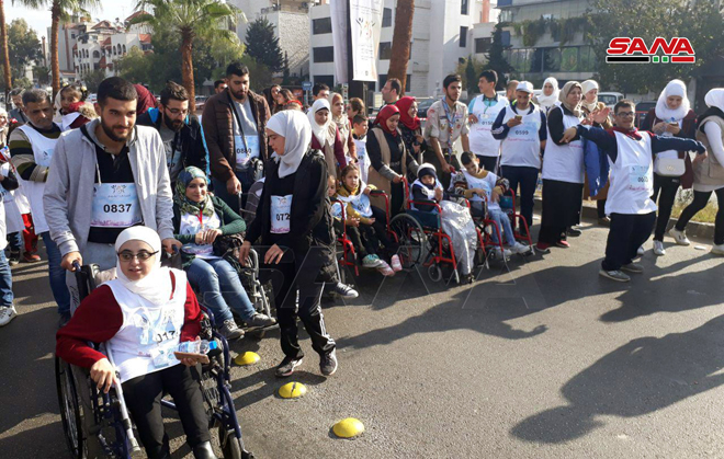 По случаю Международного дня инвалидов сегодня в Дамаске прошел марафон «Волевые люди» с участием 1000 человек, в том числе 300 – с ограниченными возможностями.